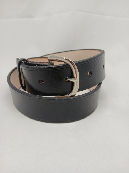 1.5 inch wide belt. Available at shows in black or dark brown.